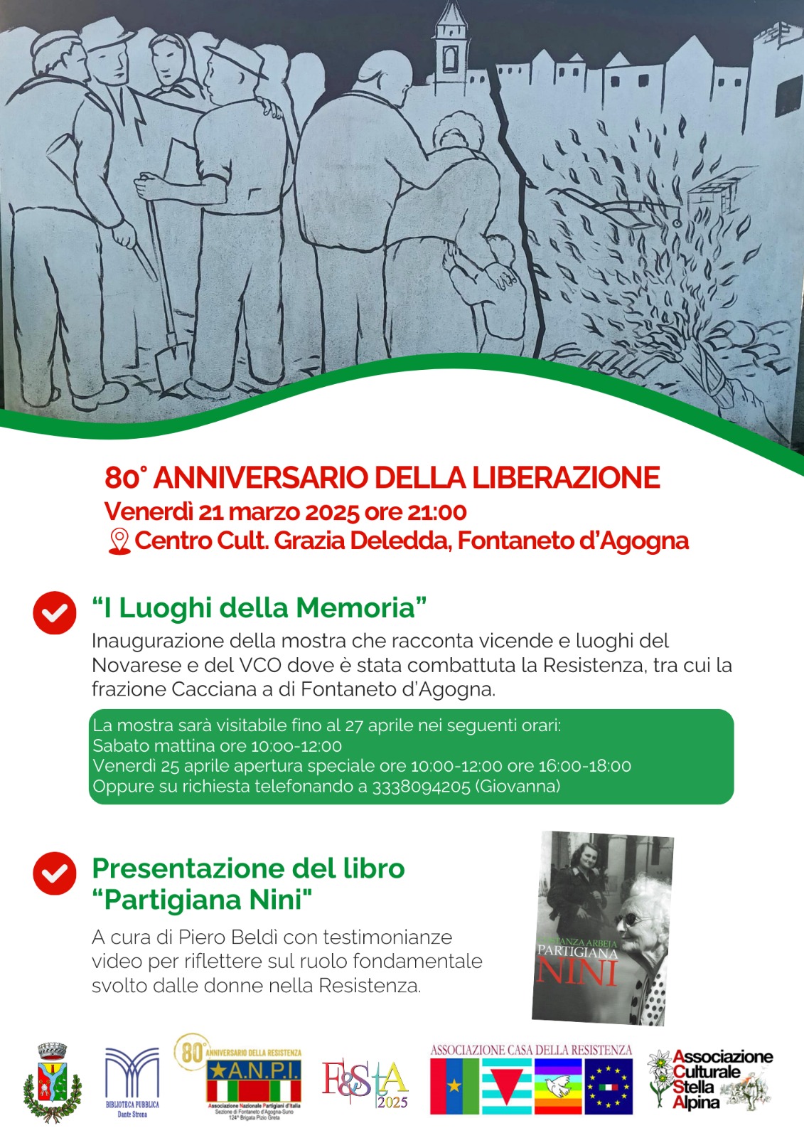 👉Presso Centro Culturale Grazia Deledda (Piazza Unità d'Italia, Fontaneto), verrà inaugurata la mostra "I luoghi della memoria", che racconta vicende e luoghi del Novarese e del VCO dove è stata combattuta la Resistenza, tra cui la frazione Cacciana a di Fontaneto d’Agogna.