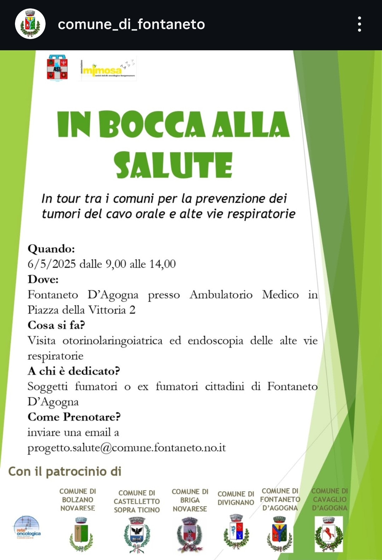 L'Associazione Mimosa, in collaborazione con ASL NO e con il personale del reparto di otorinolaringoiatria dell'Ospedale di Borgomanero, ha organizzato un tour tra i Comuni per la prevenzione dei tumori del cavo orale e alte vie respiratorie.