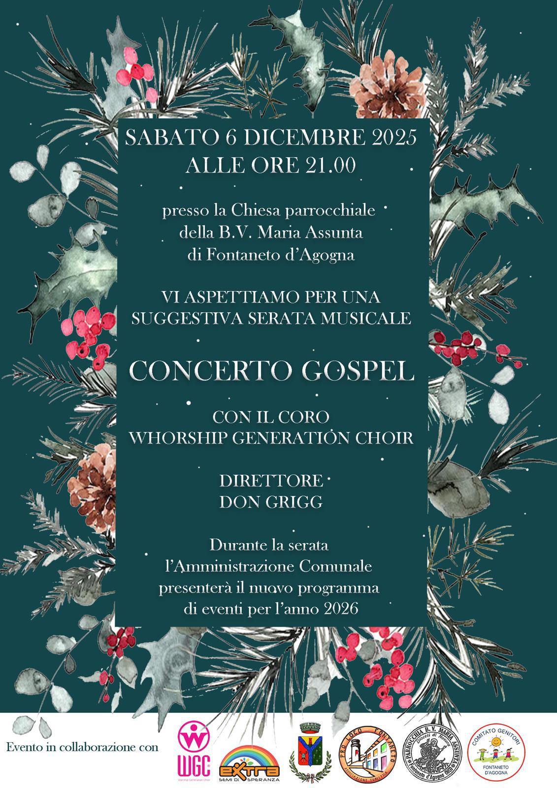 Il Natale si avvicina e vogliamo accoglierlo insieme a voi con un momento davvero speciale: una serata ricca di atmosfera, nella Chiesa Parrocchiale B.V. Maria Assunta, dove il Worship Generatión Choir – guidato dal direttore Don Grigg – ci accompagnerà con un emozionante concerto gospel. 🎶