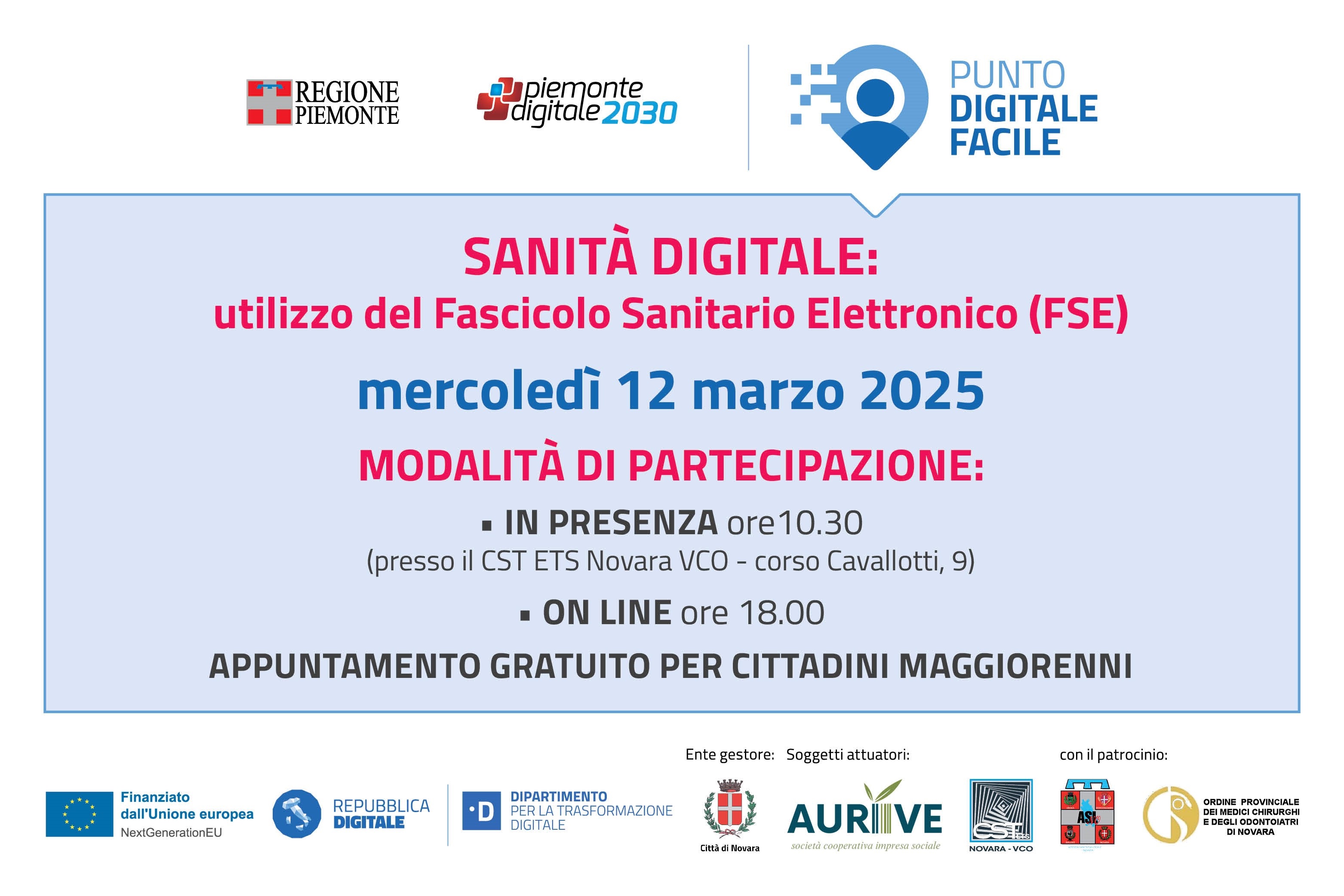 OBIETTIVO dell'incontro proposto dal CST ETS Novara VCO è conoscere e utilizzare al meglio Salute Piemonte, il punto di accesso unico per la nostra regione per consultare la storia clinica e per gestire i documenti e i dati che costituiscono il Fascicolo Sanitario Elettronico.